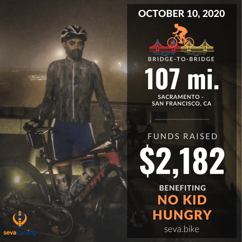I sought out a charity to support and I learned of No Kid Hungry, a campaign by the organization Share Our Strength which works to address food insecurity among children in this country, an issue made even more acute during our pandemic times. I figured I could do my own 100-mile route between Sacramento and San Francisco with the goal to raise $1,000 for No Kid Hungry over the four weeks before this ride. My expectations were low, though. I wasn’t sure I’d be able to raise that much over four weeks, but there was nothing to lose. Whatever could be raised for this cause would be worth it.