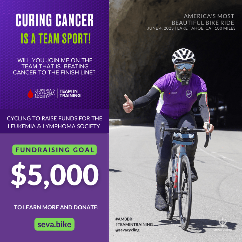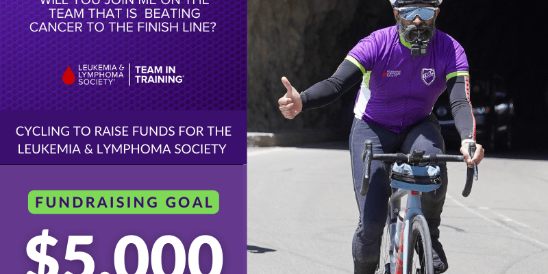 Thank you for considering a donation to help me raise funds for blood cancer patients by way of the Leukemia & Lymphoma Society. I’m training to once again ride in America’s Most Beautiful Bike Ride — a 100-mile route around Lake Tahoe, CA in June — for this cause. I really appreciate your support.