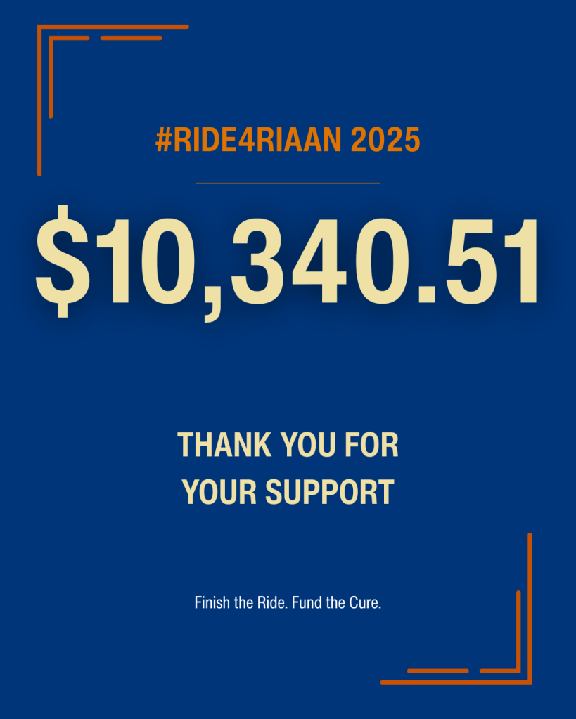 Now that the dust has settled and everything is tallied, I’m grateful to share the final total for this year’s #Ride4Riaan effort: